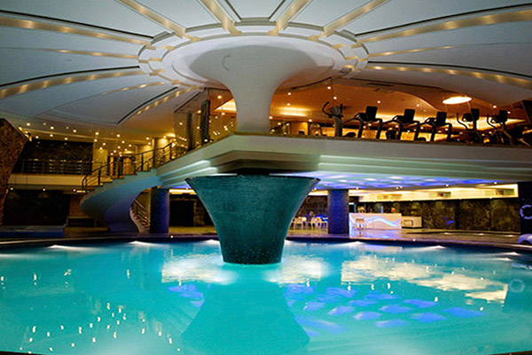 این هتل دارای ۲ مجموعه ورزشی جداگانه برای خانم ها و آقایان می باشد که هر یک دارای استخر، سونا، جکوزی، سالن بدنسازی، سالن ماساژ و … می باشد. استخر این مجموعه های ورزشی با بهره گیری از معماری بینظیر، در موقعیتی از ساختمان قرار گرفته است که با استفاده از دیواری شیشه ای بصورت نیم دایره، نمای کاملی از شهر شیراز از فراز تپه های کنار دروازه قرآن را در معرض دید قرار می دهد.